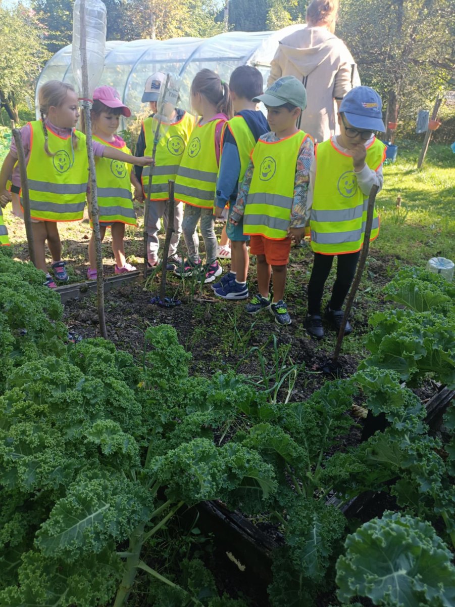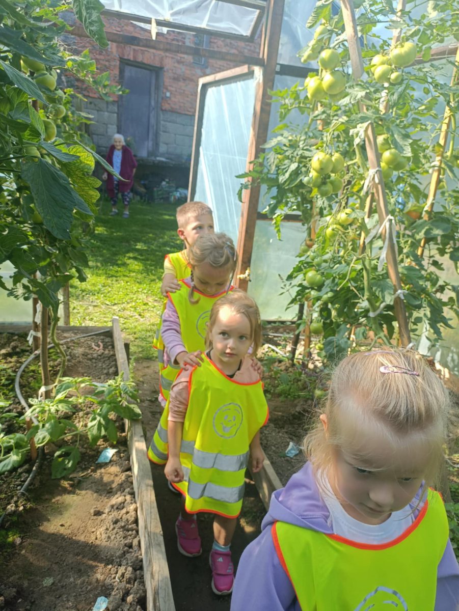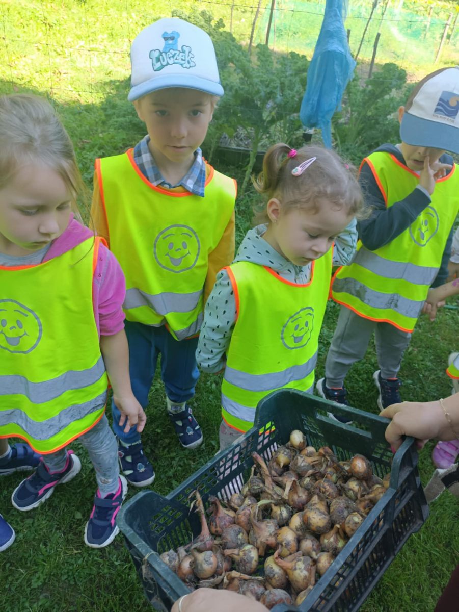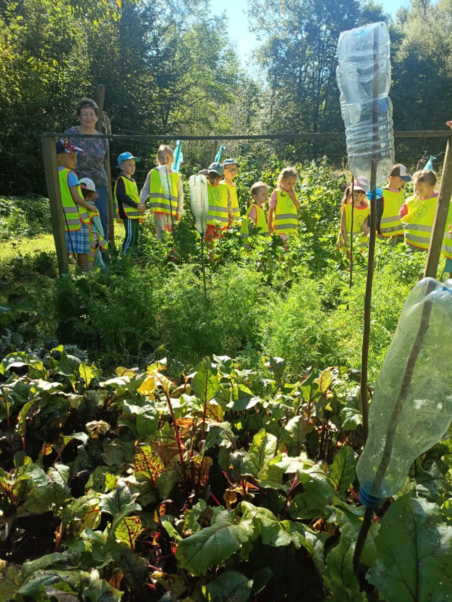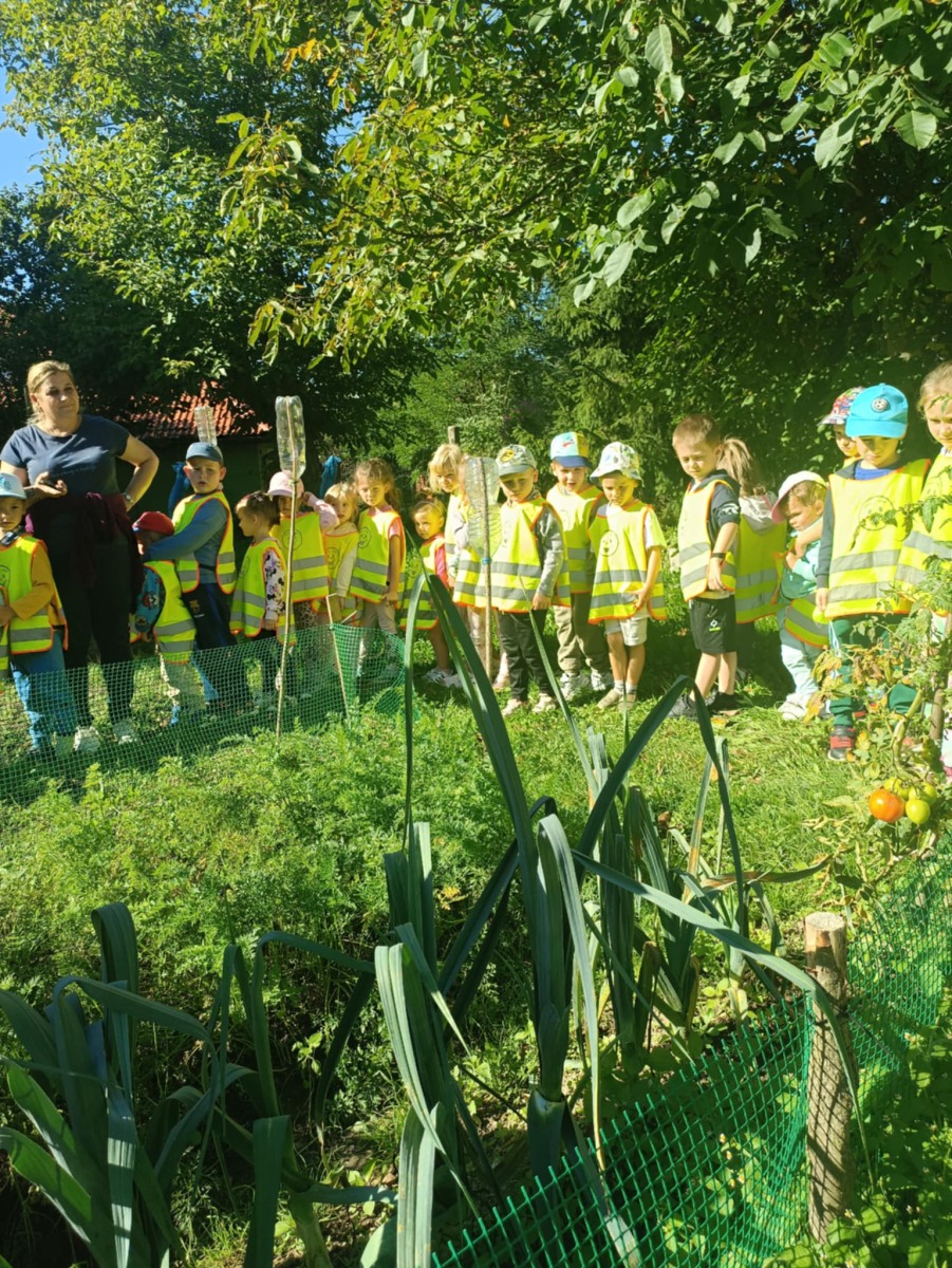 Przedszkolaki odwiedziły ogródek warzywny, gdzie mogły zobaczyć, jak wygląda praca w ogrodzie.
