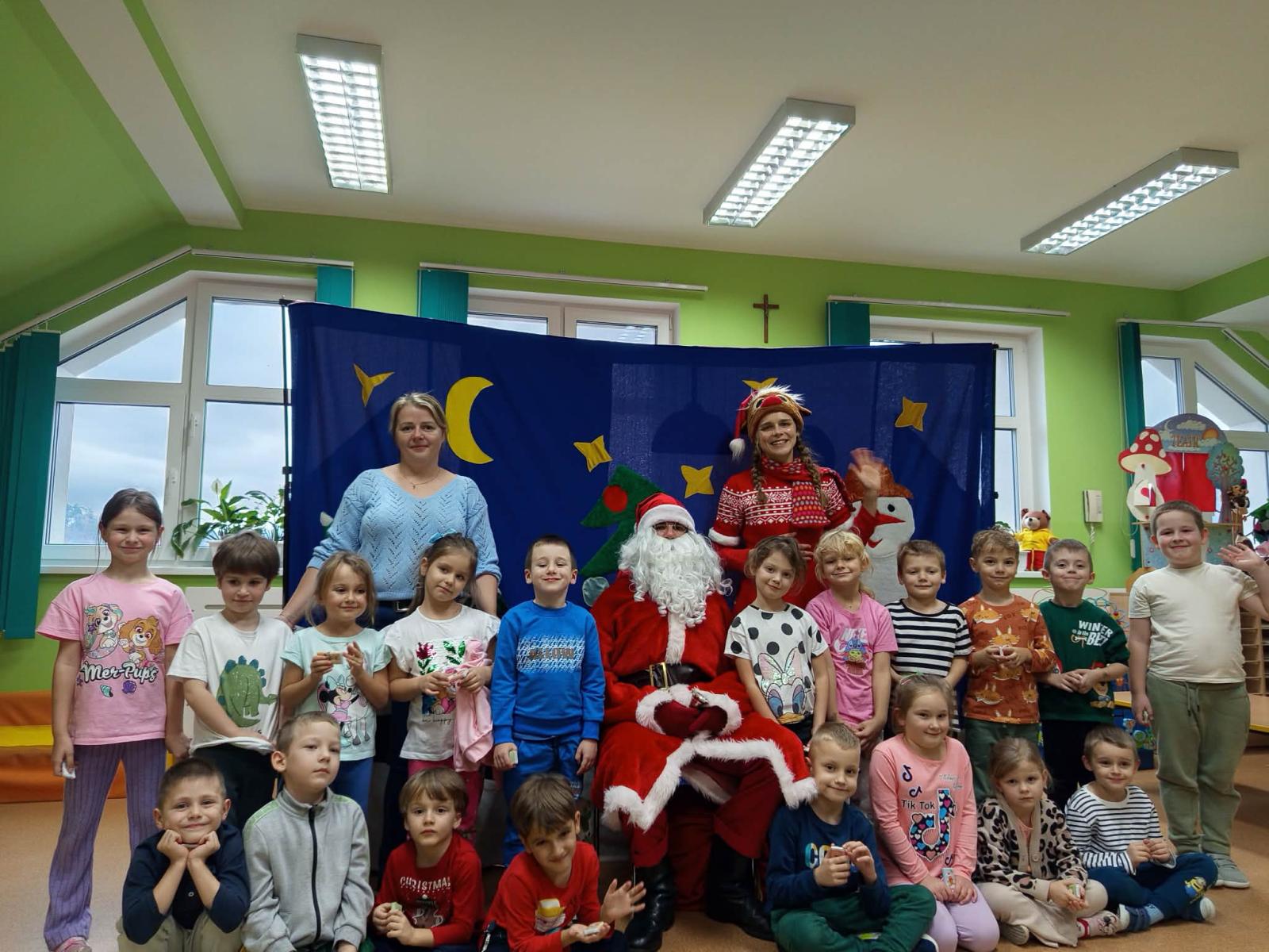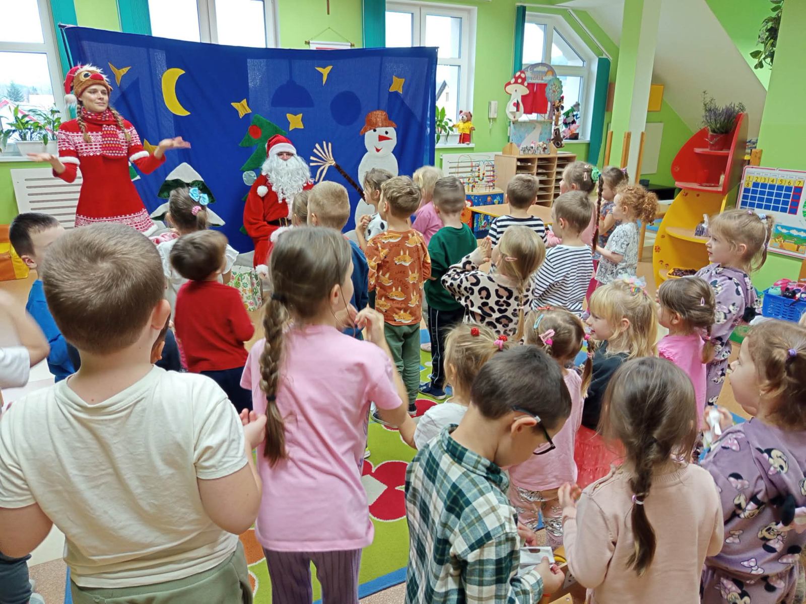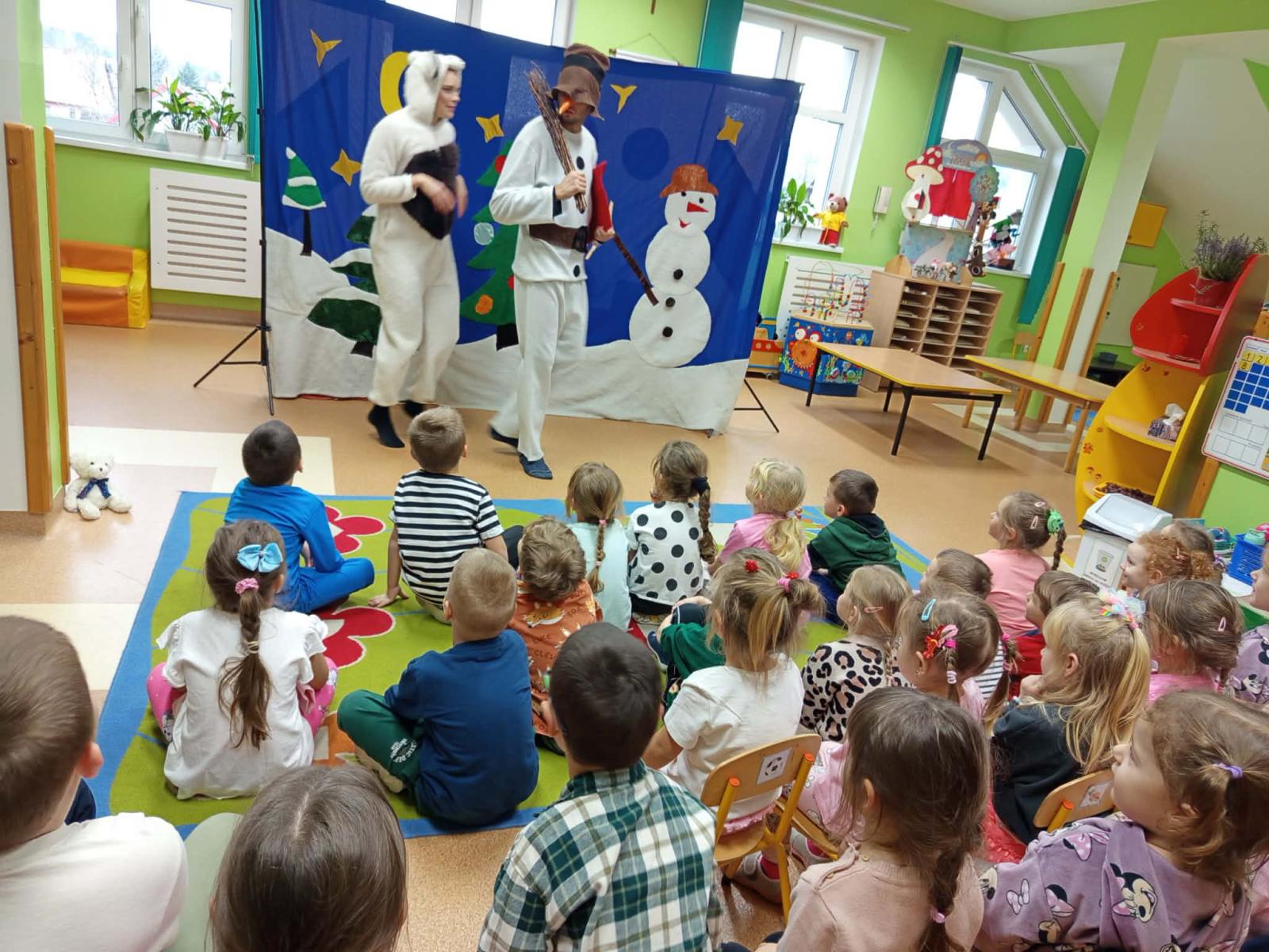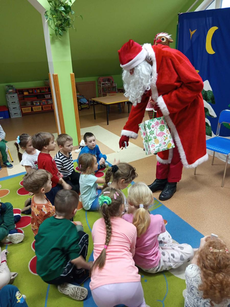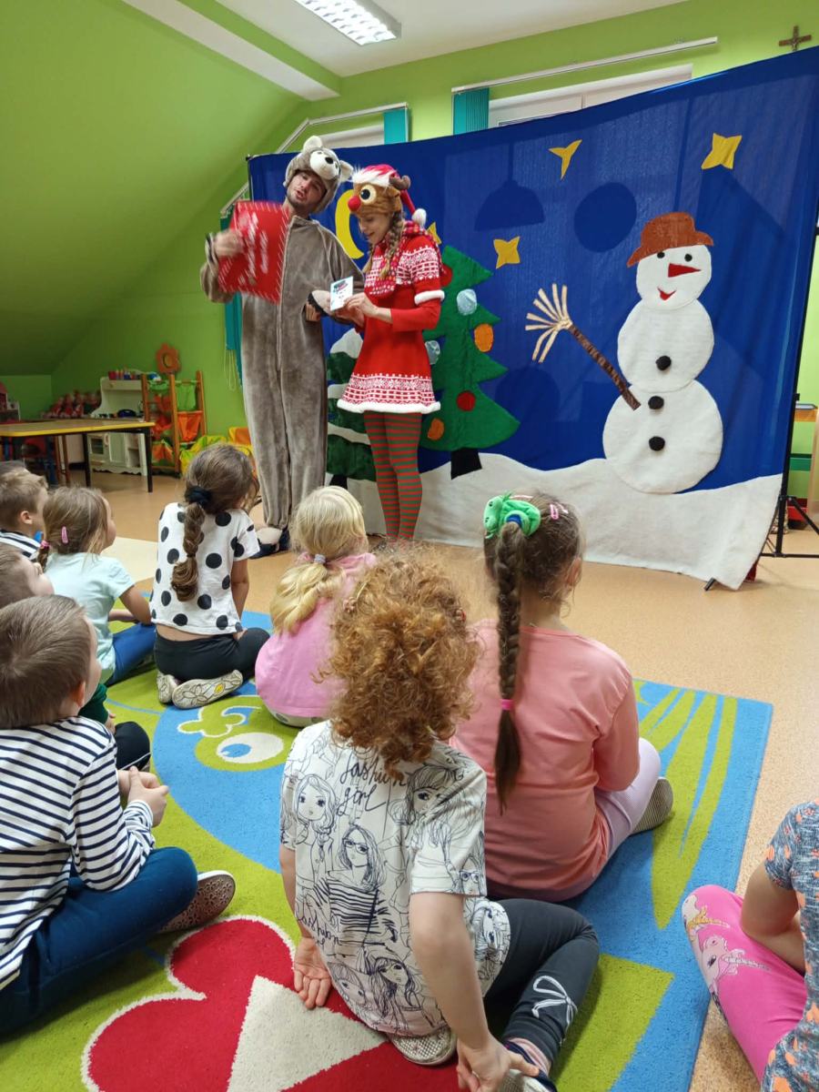 Dziś w naszym przedszkolu gościliśmy aktorów z Teatru Skrzat z Krakowa, którzy zaprezentowali dzieciom przedstawienie pt. List do Świętego Mikołaja”.  Lalka, Miś, Zajączek i Bałwanek pomagali Ani dostarczyć list do Świętego Mikołaja. Dzięki przygodom bohaterów dzieci poznały jak wielką wartością jest przyjaźń.