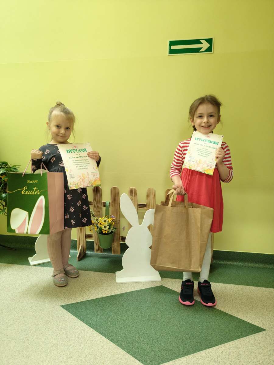 Sukces naszych przedszkolaków w konkursie plastycznym Z ogromną radością informujemy o wspaniałych osiągnięciach naszych przedszkolaków w konkursie plastycznym „Moja kartka wielkanocna”. Konkurs cieszył się dużym zainteresowaniem – napłynęło wiele pięknych, pomysłowych i starannie wykonanych prac z różnych placówek. Tym bardziej jesteśmy dumni, że wśród nagrodzonych znalazły się również dzieci z naszego przedszkola. Ich kreatywność, zaangażowanie oraz samodzielność zostały docenione przez jury konkursowe. Nasi mali artyści zdobyli zarówno miejsca na podium, jak i wyróżnienia. Uroczyste wręczenie nagród było wyjątkowym wydarzeniem, pełnym radości i emocji. Dzieci z dumą odbierały dyplomy oraz upominki, a ich uśmiechy były najlepszym dowodem na to, jak ważne i motywujące są takie chwile. Dla wielu z nich było to pierwsze tego typu doświadczenie, które z pewnością pozostanie na długo w ich pamięci. Serdecznie gratulujemy wszystkim uczestnikom konkursu, a szczególnie naszym przedszkolakom, którzy tak pięknie reprezentowali naszą placówkę. Dziękujemy również rodzicom i nauczycielom za wsparcie oraz zachęcanie dzieci do rozwijania swoich talentów plastycznych. Życzymy dalszych sukcesów i nieustającej radości z tworzenia!